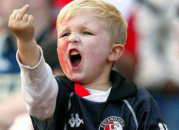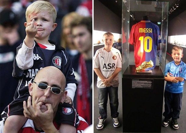 Ele tinha apenas 5 anos na ocasião em que o fotógrafo holandês Jasper Juinen, da agência Reuters, clicou o garotinho que inocentemente reagiu em meio a um provocação entre torcidas na abertura do jogo entre Feyenoord e Borussia Dortmund, no dia 8 de maio de 2002, na final da Copa da Uefa.