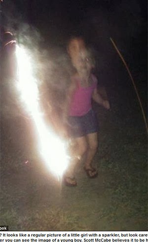 A fotografia, tirada durante uma comemoração do Dia da Independência norte-americana, mostra Madison brincando e, segundo acredita a família, a imagem do menino pode ser vista pouco acima da prima.
