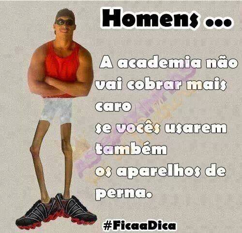 Eu rio sabe por quê? Porque macharada não deixa passar uma, tem alguns deles que não perdoam, adoram colocar defeitos, principalmente se a mulher não dá a mínima ou já deu um fora nele. Daî que essa é a pergunta que não quer calar: por que homem não malha a perna? Estufam o peito, batalham para ter uma barriga de tanque, mas o cambito que é bom só falta quebrar.